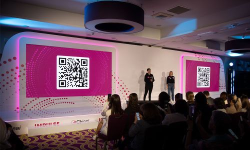 На большом экране отображается вопрос и каждый участник мероприятия может перейти по ссылке или отсканировать QR-код, чтобы мгновенно проголосовать с помощью персонального мобильного устройства без необходимости ввода логина или пароля.