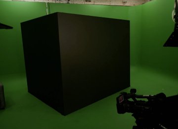 Две стены размером 2,5х3м, установленные специальным образом (под углом). Мы можем предоставить всё необходимое оборудование в аренду или использовать ваше.