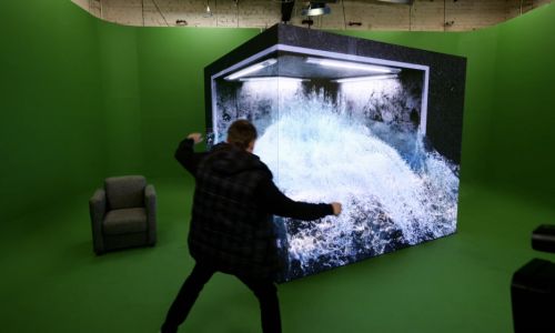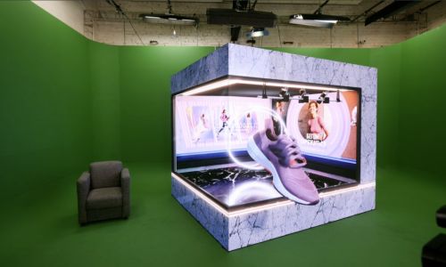 Благодаря необычной форме экрана и определенной точки обзора, а также специально подготовленному контенту, возникает ощущение объемности картинки. Такую инсталляцию хорошо размещать в проходных зонах для привлечения внимания посетителей.